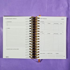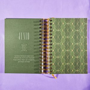 Con sus 398 páginas y tamaño 15×21 cm, combina comodidad y amplitud: lo suficientemente grande para escribir con libertad y lo bastante compacta para llevar en la cartera o mochila.