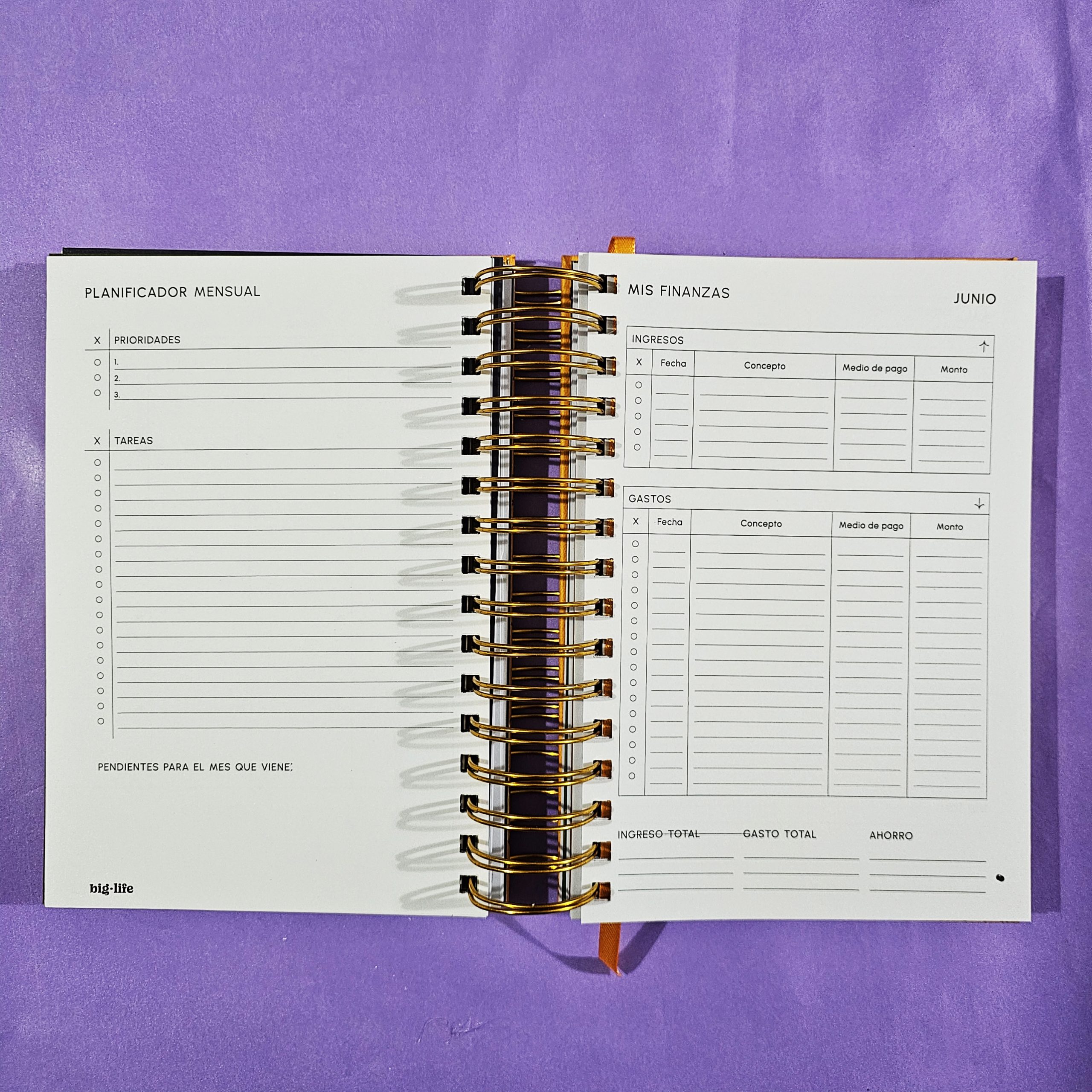 ​Visión Completa: Organízate a lo grande con el calendario y planificador anual. Luego, enfócate en tus objetivos a corto plazo con el planificador mensual.