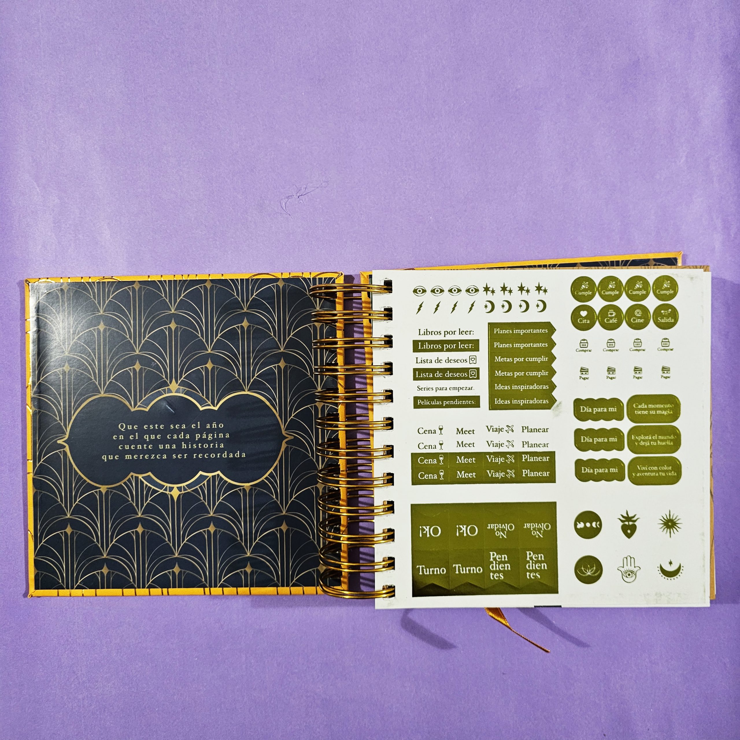 Máximo Espacio Creativo: Con 430 páginas y un formato de día por página, tendrás espacio de sobra para tus tareas, ideas, journaling, bocetos y todo lo que necesites plasmar.