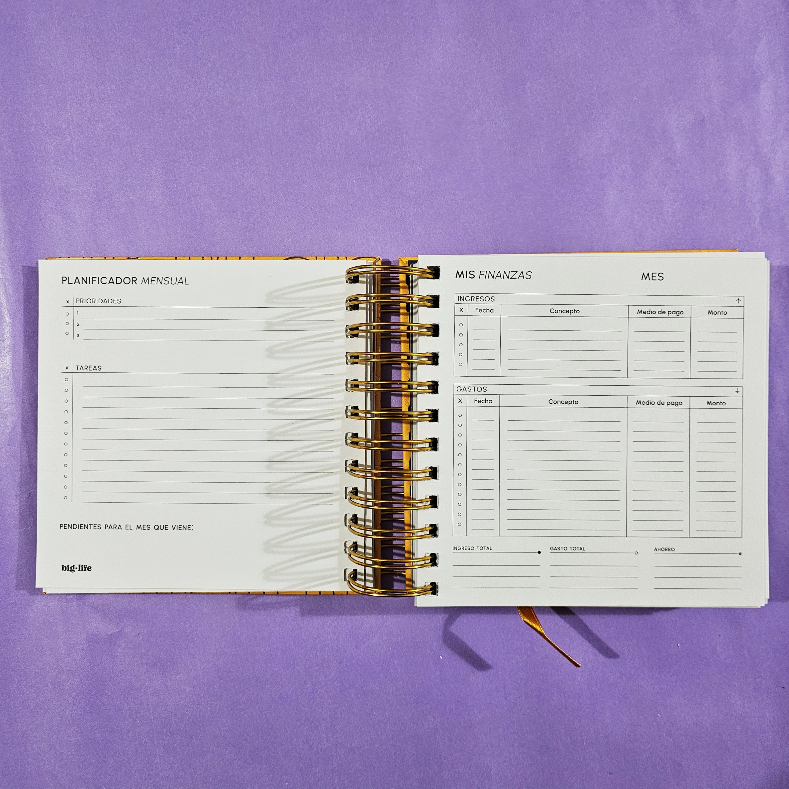 Planificación Esencial: Estructura tus grandes metas con el planificador anual, enfócate en tus objetivos con el planificador mensual y mantén tus finanzas bajo control con la hoja de gastos.
